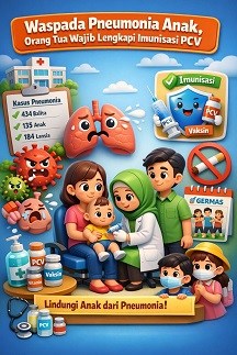 “Lengkapi imunisasi seperti PCV dan vaksin lainnya, kurangi paparan asap rokok, serta terapkan pola hidup sehat,” tegasnya. Ia juga mengajak masyarakat menjalankan GERMAS. “