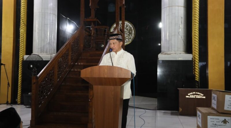 JABAROKENEWS.COM, Lhokseumawe – Ketua Satuan Tugas (Kasatgas) Percepatan Rehabilitasi dan Rekonstruksi Pascabencana Wilayah Sumatera Muhammad Tito Karnavian melaksanakan salat Tarawih bersama masyarakat Kota Lhokseumawe di Masjid Agung Islamic Centre Lhokseumawe, Aceh, Jumat (20/2/2026). Tito menyampaikan rasa bahagia dapat kembali bersilaturahmi dengan masyarakat Lhokseumawe, sekaligus melaksanakan rangkaian ibadah Ramadan bersama.