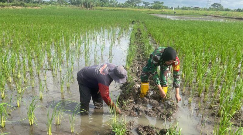 JABAROKENEWS.COM, Banten – Dalam rangka mendukung program ketahanan pangan nasional, Bintara Pembina Desa (Babinsa) dari Koramil 0602-06/Kramatwatu, Kodim 0602/Serang, Serka (K) Deka Oktalia, melaksanakan kegiatan pendampingan dan membantu petani saat pemeliharaan padi, bertempat di Desa Toyomerto Kecamatan Kramatwatu Kabupaten Serang, Provinsi Banten, Selasa (21/01/2025).