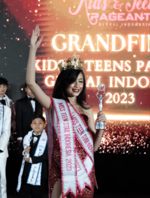 Shafa Aqila Aluraissa usia 14 tahun yang akrab dipanggil Ica mewakili DKI Jakarta berhasil meraih 3 gelar yaitu Miss Teen Star Indonesia 2023, Best Gown dan Best Social Media.