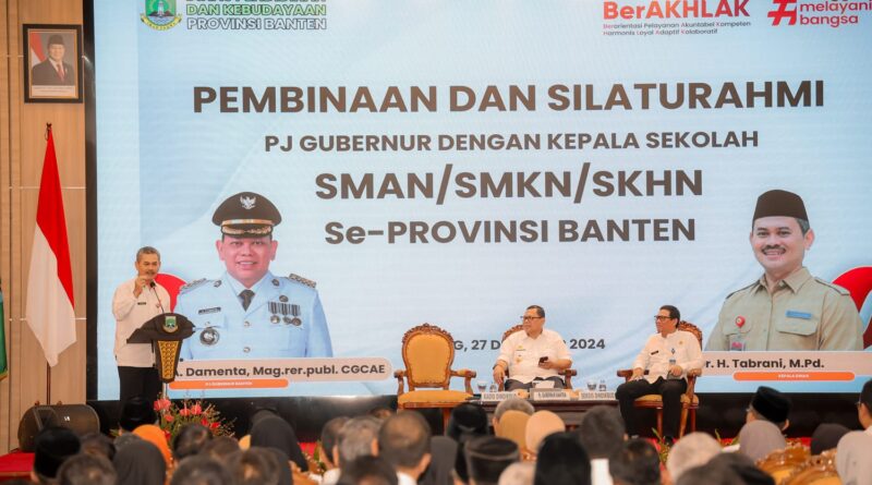JABAROKENEWS.COM, Serang – Penjabat (Pj) Gubernur Banten A Damenta melakukan silaturahmi bersama ratusan Kepala Sekolah (Kepsek) SMAN/SMKN dan SKhN di Pendopo Gubernur Banten, KP3B Curug, Kota Serang, Jumat (27/12/2024). Para Kepala Sekolah harus mempunyai berbagai inovasi dalam pengajaran di sekolah agar tidak monoton.