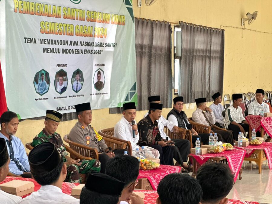Wawasan Kebangsaan dihadapan Ratusan Santri Pondok Pesantren (Ponpes) Ibnul Qoyyim Yogyakarta menjelang libur semester 2024 dengan tema “Membangun jiwa nasionalisme santri menuju Indonesia Emas 2045” di gelar di Aula PSP Ponpes Ibnul Qoyyim, Piyungan, Kab. Bantul, pada hari Kamis (12/12/2024).