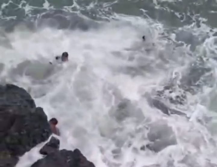 Peristiwa yang terekam video dan beredar di WhatsApp pada Minggu (16/11/2025) itu memperlihatkan keduanya terseret ombak ketika berdiri di atas batu karang.