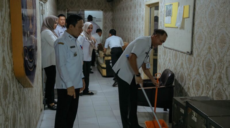 Dalam peninjauan tersebut, Sekda melihat langsung aktivitas para pegawai yang melaksanakan pembersihan lingkungan kerja, mulai dari ruang perkantoran hingga area luar gedung. Ia juga berdialog dengan sejumlah pegawai untuk memastikan kegiatan dilaksanakan secara tertib dan konsisten.