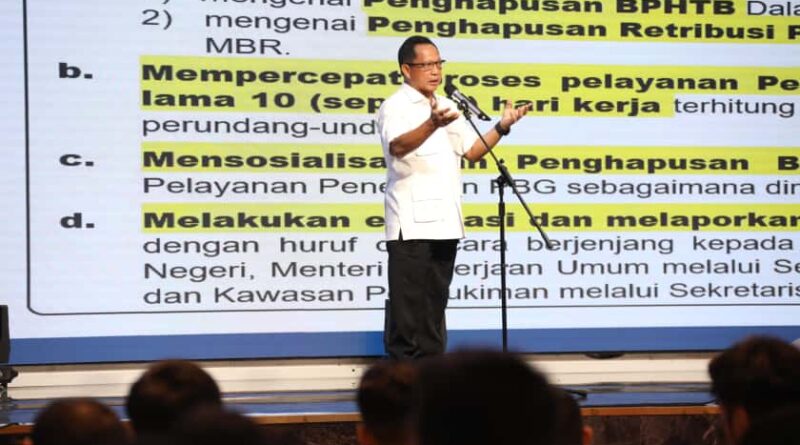 Mendagri menjelaskan sejumlah kebijakan pemerintah untuk meringankan beban masyarakat dalam memiliki rumah. Hal ini salah satunya melalui pembebasan Bea Perolehan Hak atas Tanah dan Bangunan (BPHTB) serta retribusi Persetujuan Bangunan Gedung (PBG) bagi MBR.