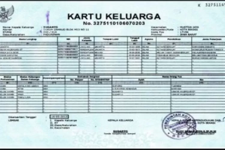 KK yang dicetak mandiri tetap diakui keabsahannya. Dokumen tersebut mencantumkan: