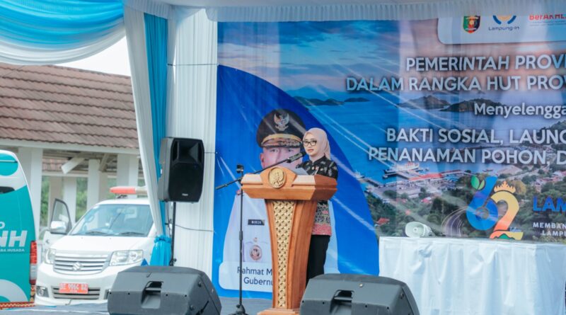 JABAROKENEWS.COM, LAMPUNG SELATAN – Wakil Gubernur Lampung Jihan Nurlela menghadiri rangkaian kegiatan dalam rangka memperingati Hari Ulang Tahun (HUT) Provinsi Lampung ke-62. Kegiatan tersebut di antaranya bakti sosial, peluncuran layanan kesehatan baru, penanaman pohon, dan senam sehat. Kegiatan tersebut dipusatkan di Rumah Sakit Umum Daerah (RSUD) Bandar Negara Husada (BNH), Jati Agung, Lampung Selatan, Kamis (16/4/2026).